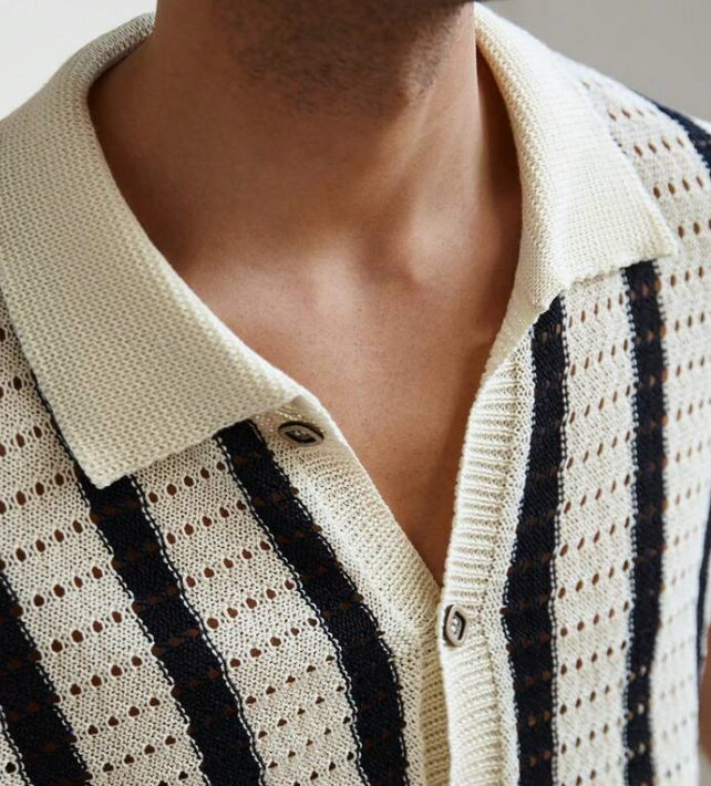 The striped pattern and casual knit fabric offer a trendy, modern look that fits well with spring and summer styles.